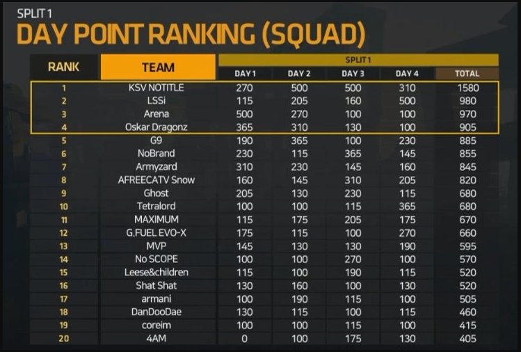 AfreecaTV PUBG League Pilot Season/Split 1 - 나무위키